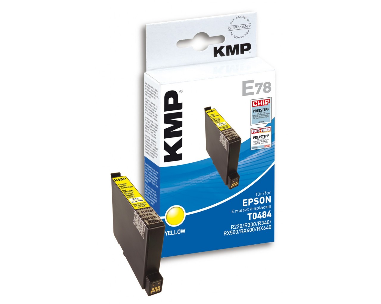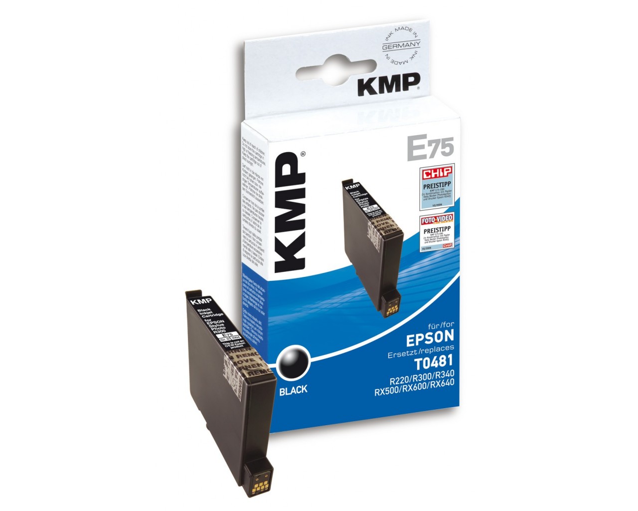 Inkoustová náplň získala hodnocení "Cenový tip" v testu magazínu Chip a Foto-Video Digital. "... ale dokonce s nimi (náplněmi KMP) vytisknete fotografie, které si v ničem nezadají s originálními výtisky, a v některých aspektech jsou dokonce lepší." (Chip 10/2006). Kompatibiní s originální inkoustovou cartridgí Epson s mořským koníkem na obalu.